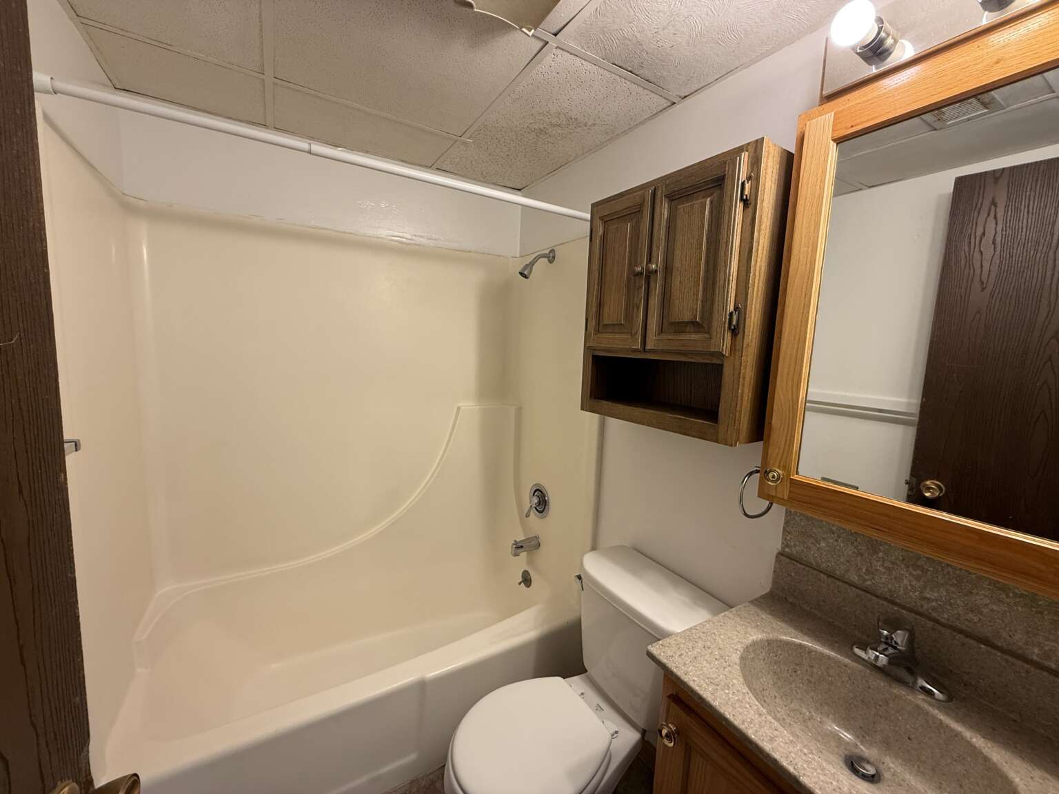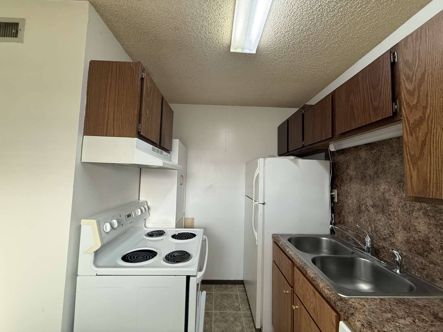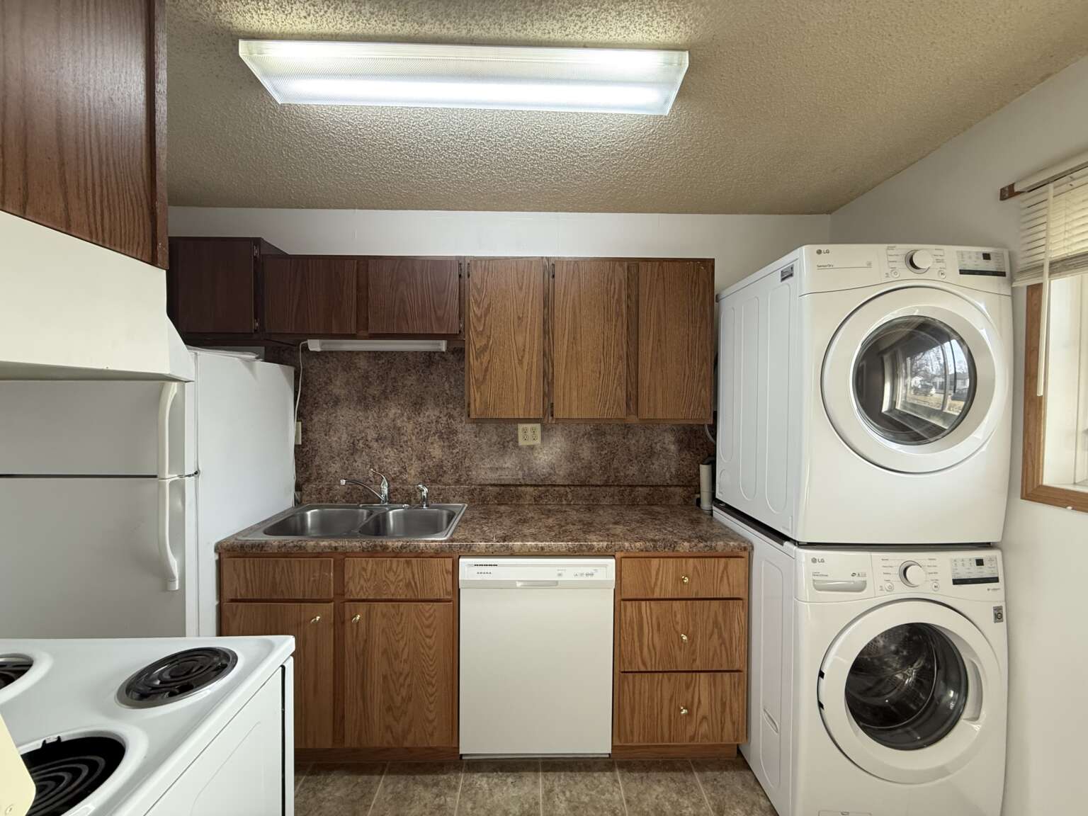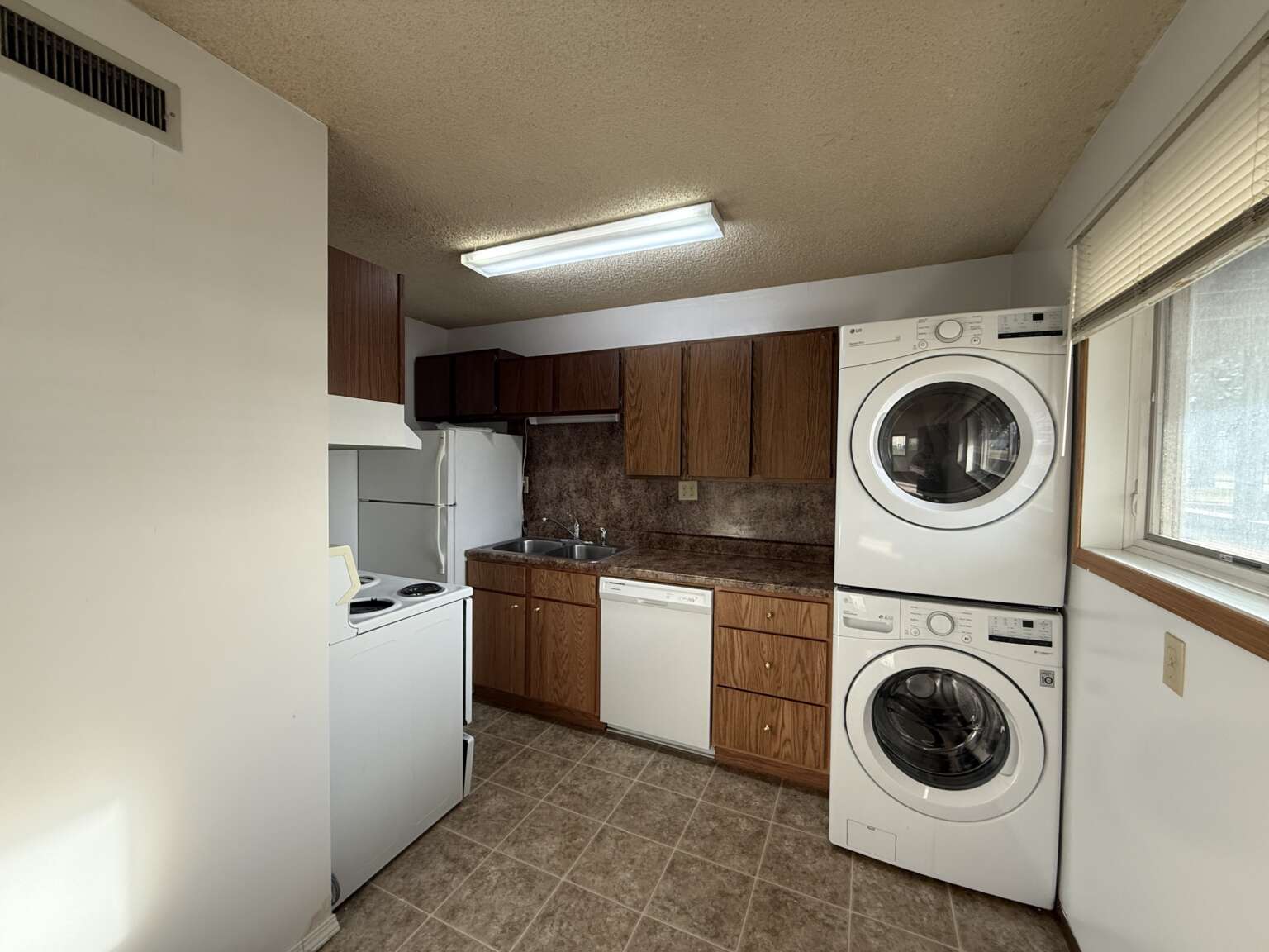 Two bedroom ,1 bath apartment with refrigerator, stove, washer, dryer, central heating and air.