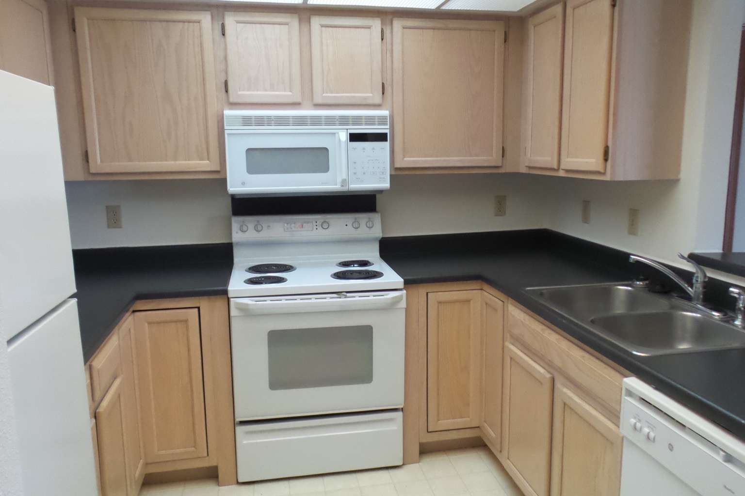 2 bedroom 2 bath apartment includes stove with self-cleaning oven, refrigerator, dishwasher, garbage disposal, full size washer and dryer, central A/C and spacious walk-in closets.