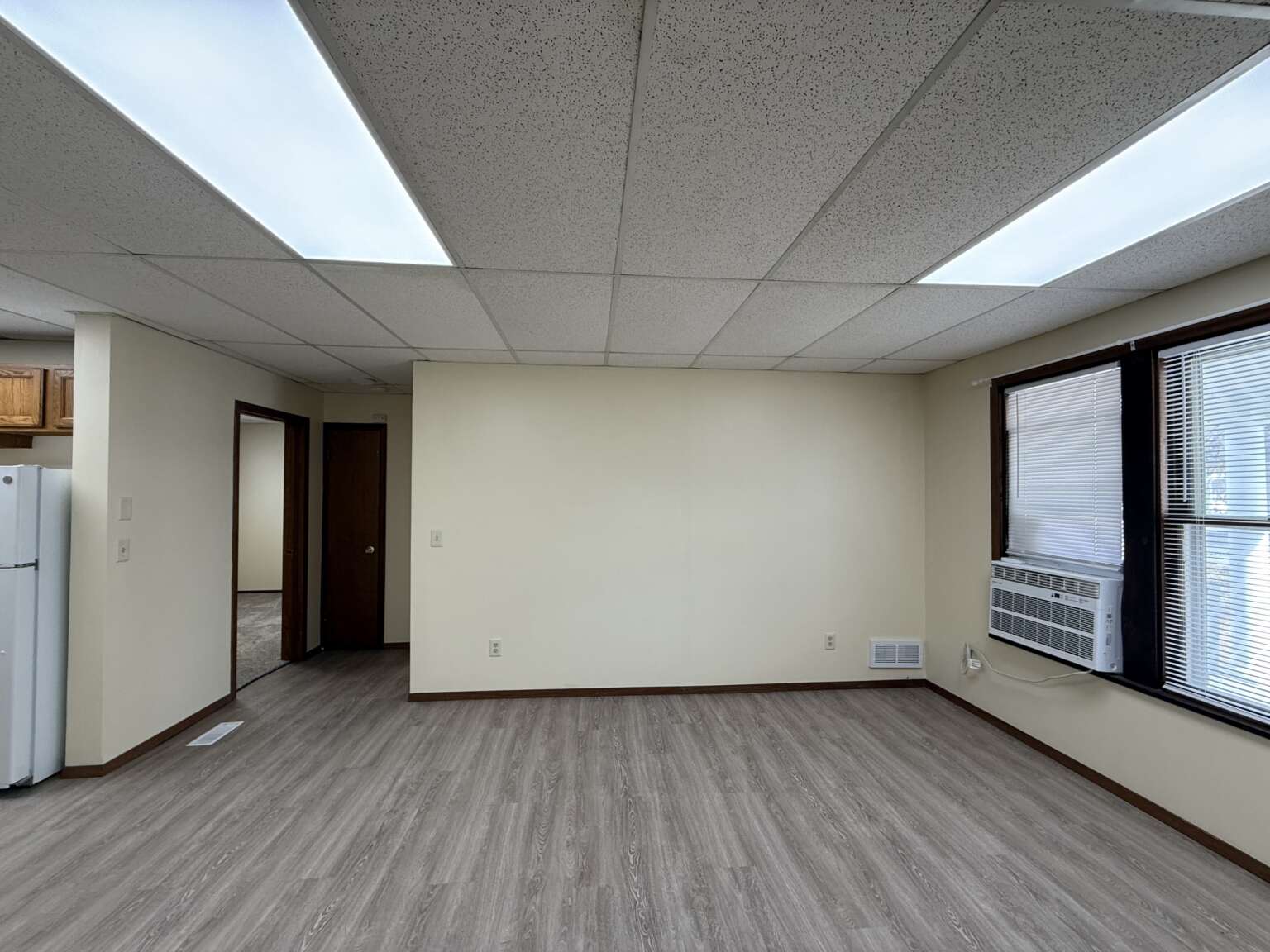 Includes stove, refrigerator and window A/C. Lawn care and snow removal provided. Tenant pays Electric, Owner pays gas, and water/sewer/trash.